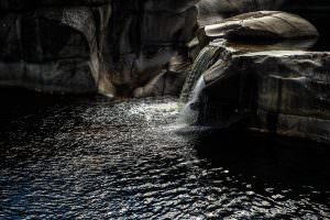 Vandfald og dybe bassiner, hvor man kan nyde gyset ved at springe fra klipperne.